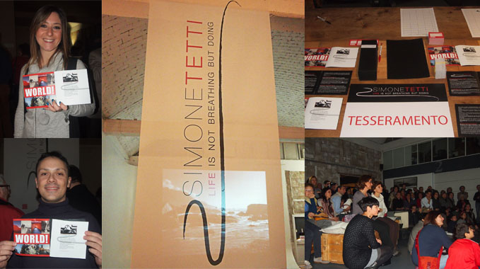 Read More Grazie alla presenza di tantissimi sostenitori e all’impegno di quanti hanno collaborato alla realizzazione dell’evento, nella serata di presentazione dell’Associazione si è manifestato chiaramente tutto lo spirito della nostra iniziativa. A partire dall’iniziale idea di stampare per la raccolta fondi in favore della ricerca sull’osteosarcoma la raccolta fotografica che Simone ha stampato in una prima edizione nel 2010, siamo giunti alla stesura di un programma di più ampio respiro che si realizza in questa prima fase attraverso il progetto WORLD!; gli obiettivi primari sono essenzialmente due: la trasmissione dell’esperienza di Simone